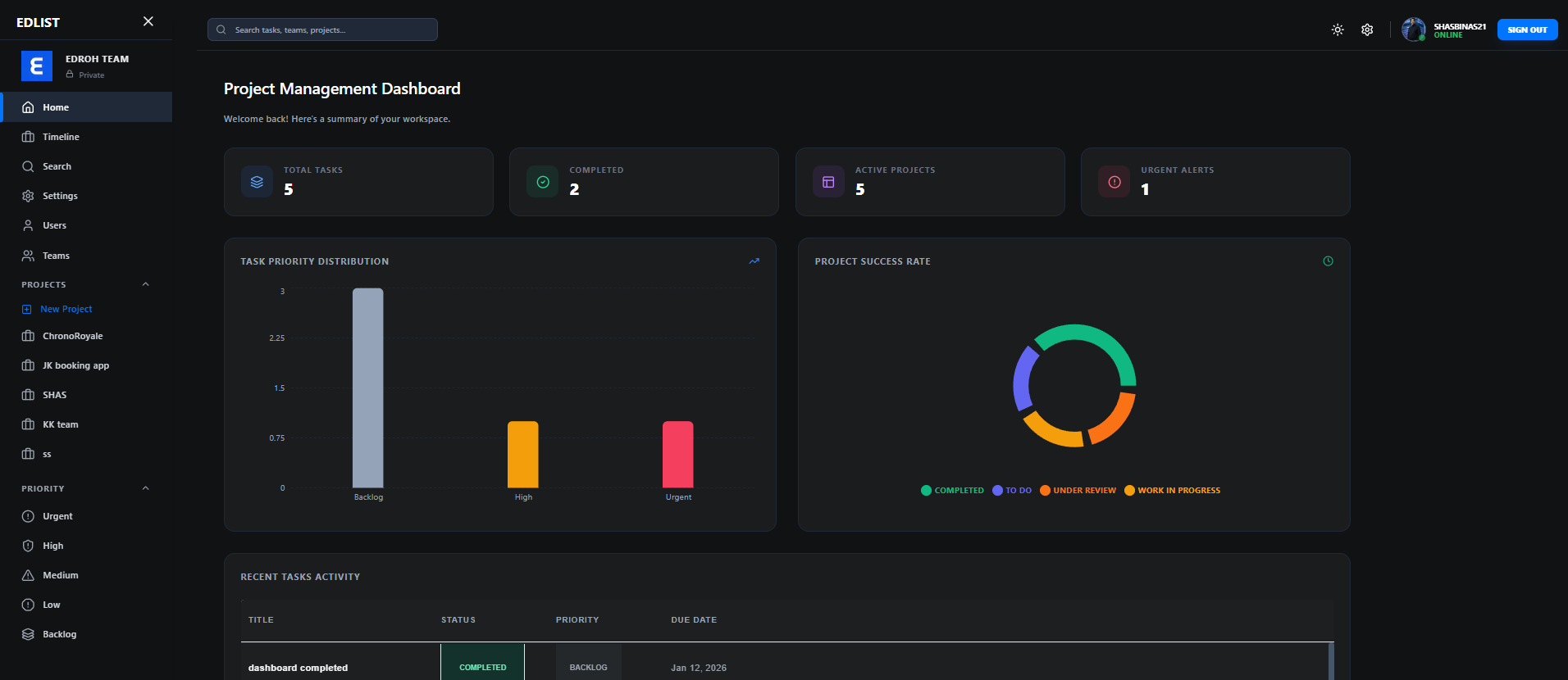 Architected a full-stack project management application supporting 5+ project views with an interactive analytics dashboard.